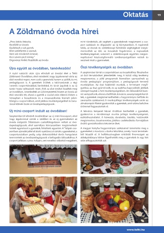 ismerős csoporttársakkal, barátokkal, és kicsit izgultak is az új munkájában. Az őszi házkörüli munkák, a természet megfi-