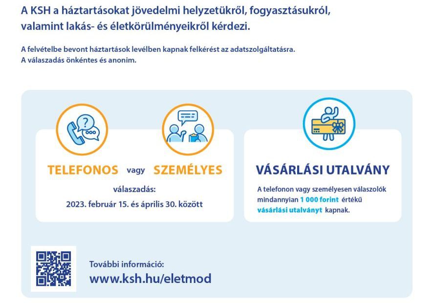 2023. február 15-e és április 30-a között a Központi Statisztikai Hivatal a háztartásokat jövedelmi helyzetükről, fogyasztásukról, valamint lakás- és életkörülményeikről kérdezi.